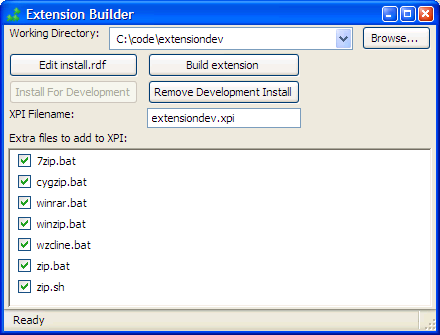 Build your extension's package (jar and xpi files), as well as install your working directory as an extension for development. Now provides most of the features of the popular bash build script, including rewriting chrome.manifest to use jar files.