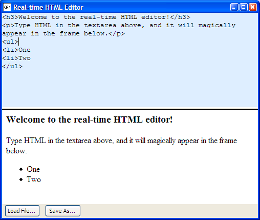 Jesse Ruderman's Live HTML Editor allows you to edit HTML with a realtime preview. Try it online!