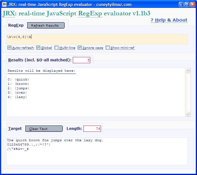 Cüneyt Yýlmaz's JRX allows you to test regular expressions in real time. Try it online!