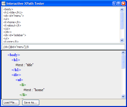 The Interactive XPath Tester allows you to quickly test an XPath expression against an XML document. Based on a tool by Tony Chang. Try the original online!