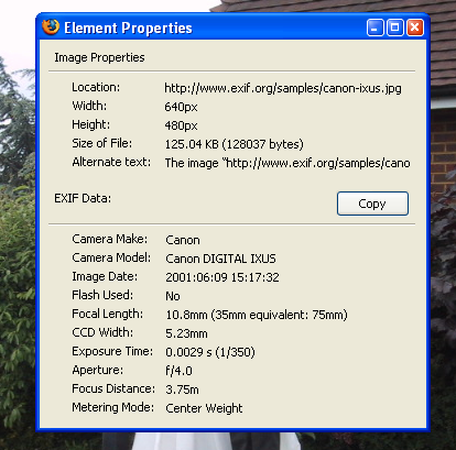 JPEG images from the convenience of your Firefox browser. Most digital cameras add this data to all images you take.